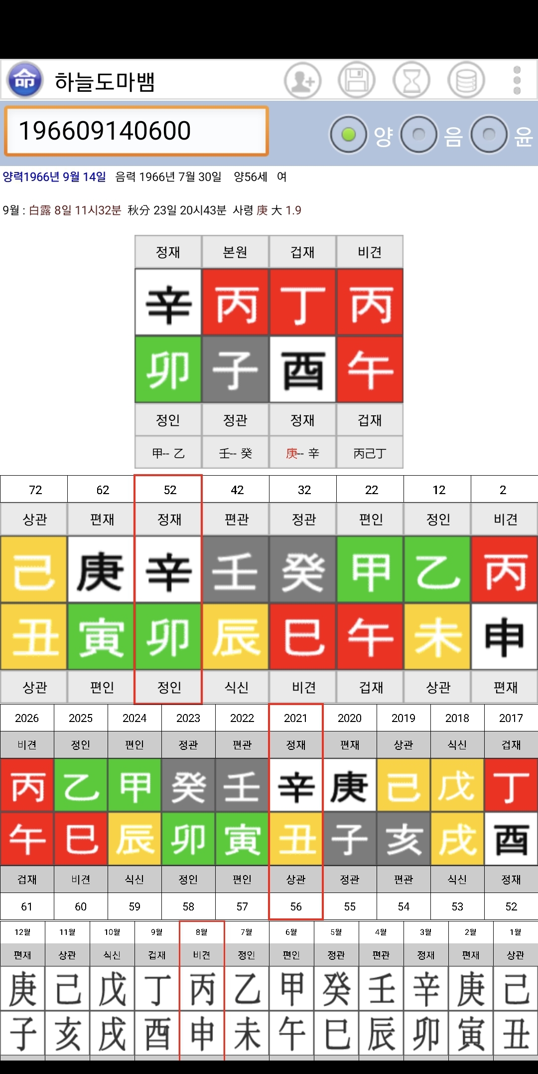 지금 56세니까 4년 전부터 기운이 왕성했다고 볼 수 있다.